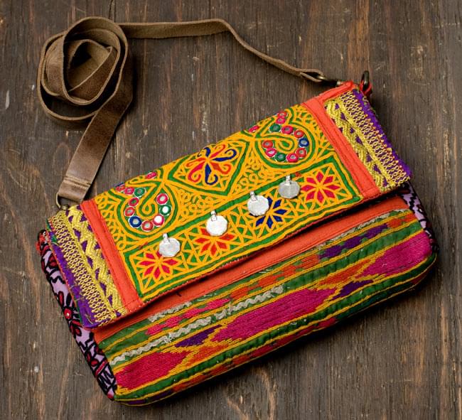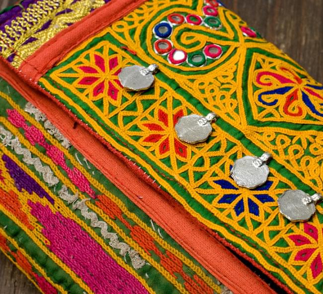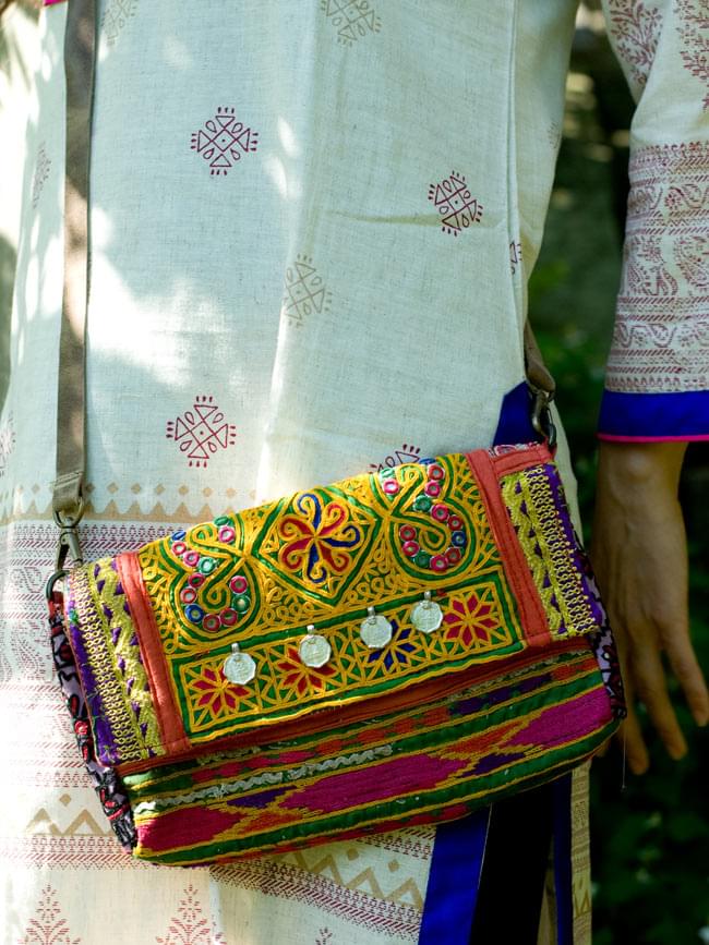 こちらのバッグはアラブ諸国の古布を1枚1枚配置し、パッチワークのようにつなぎ合わせたバッグです。色鮮やかなカラフルな布地に、ビーズやミラーワークがほどこされていたりと、存在感たっぷりのバッグです。古布が1枚1枚職人の手によって合わさり、バッグに生まれ変わる・・・その配色は世界にひとつだけ。まさにどのバッグにもオンリーワンの特別感があります。■アラブ諸国の古布
