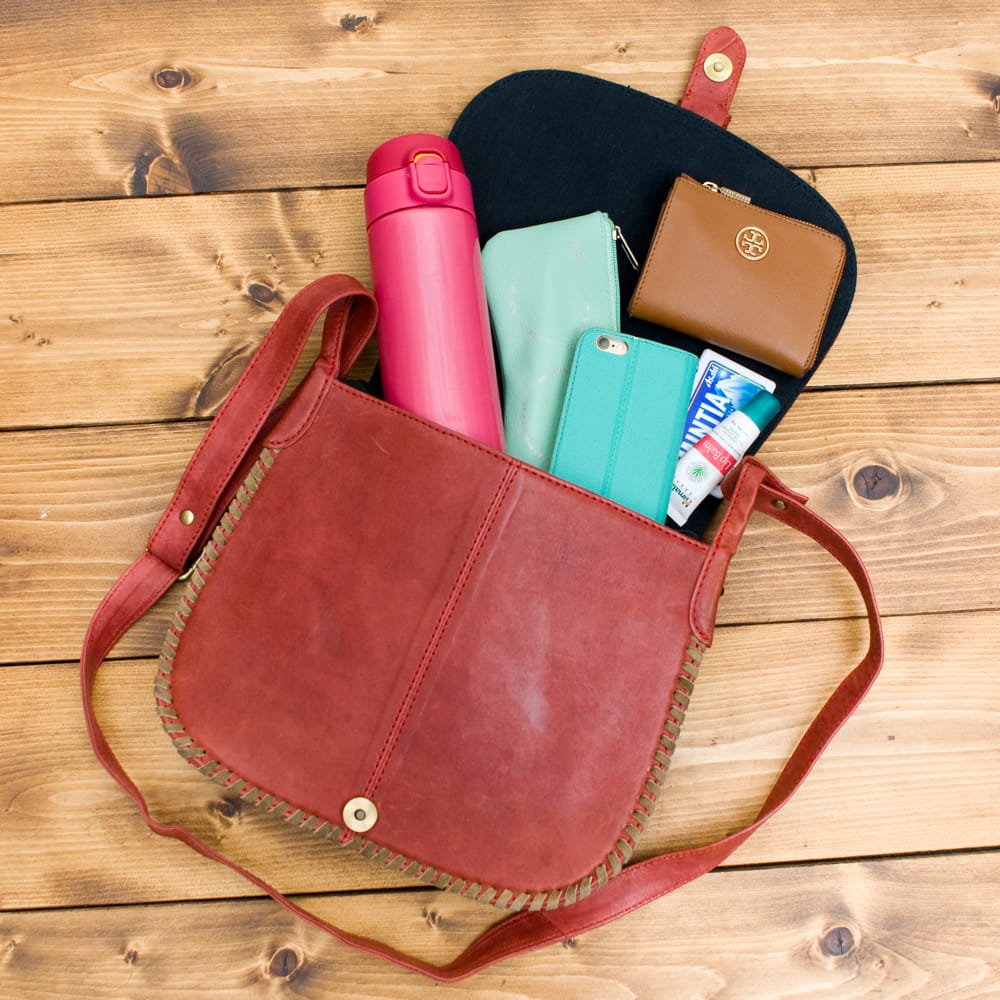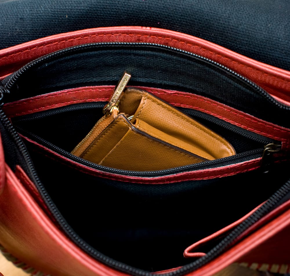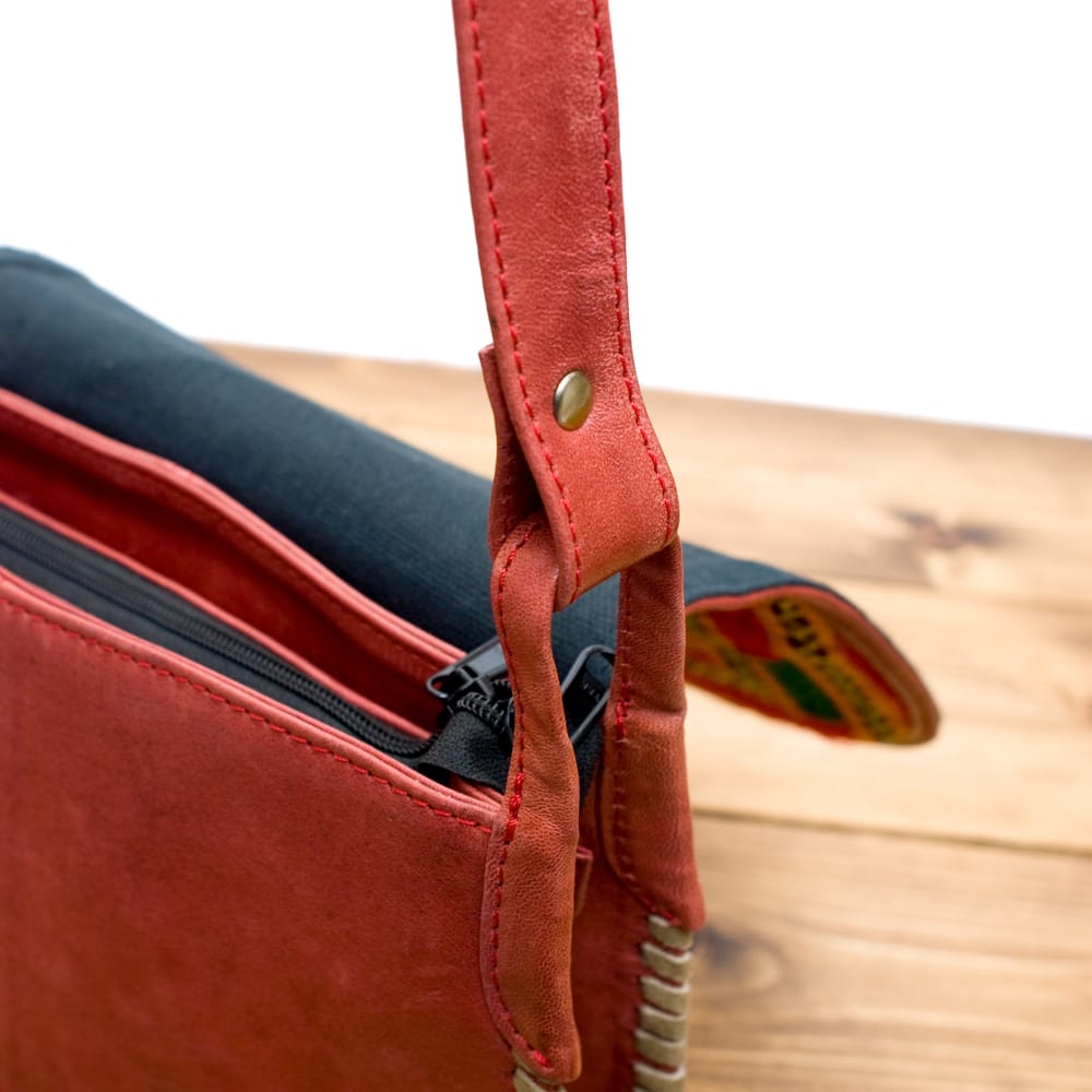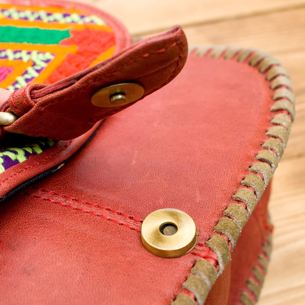 しっかりとしたスウェードのレザー生地に色鮮やかな美しい刺繍が印象的なバッグです。財布や携帯、水筒等がすっぽり入り、ちょっとしたお出かけに最適な使いやすいサイズです!
