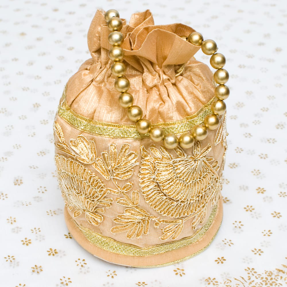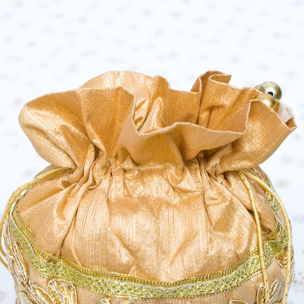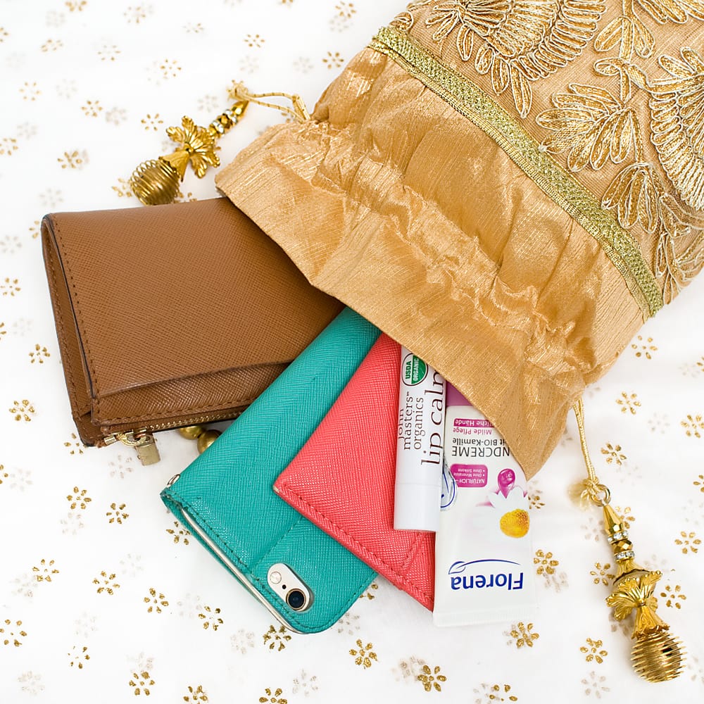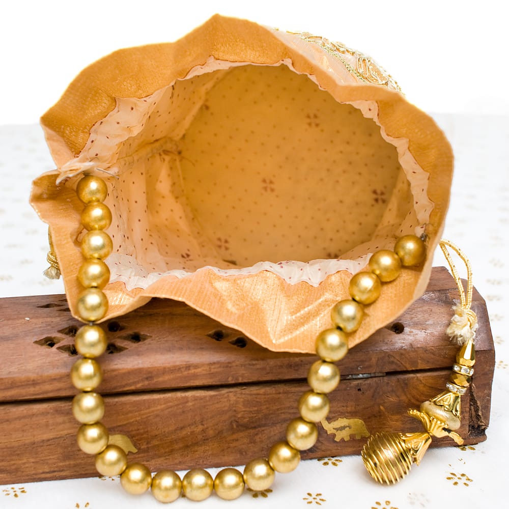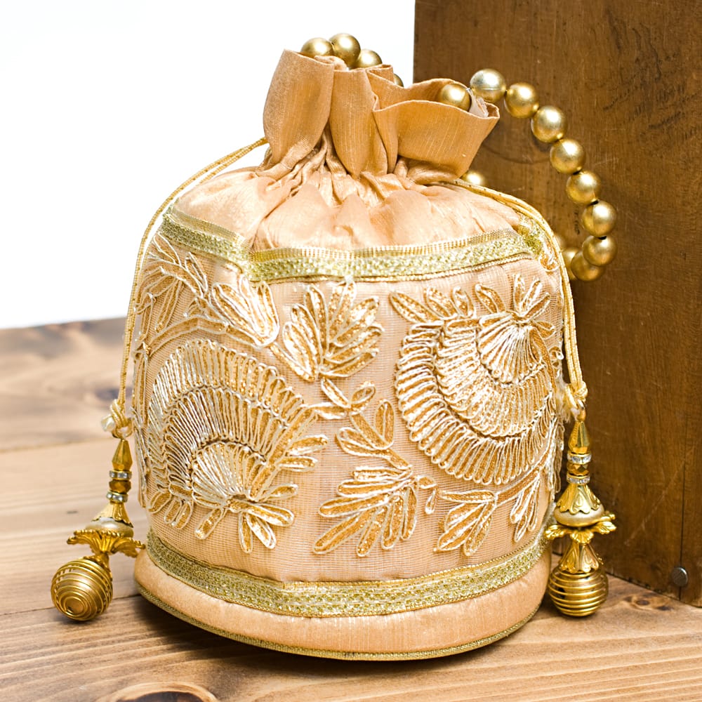 インドのきらきらミニバッグ・サリー等へオススメの巾着 - ゴールド