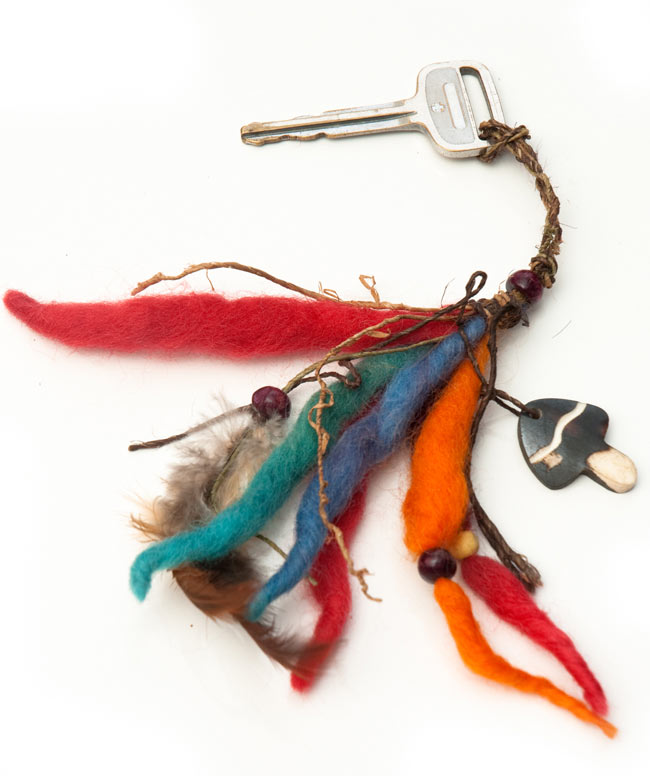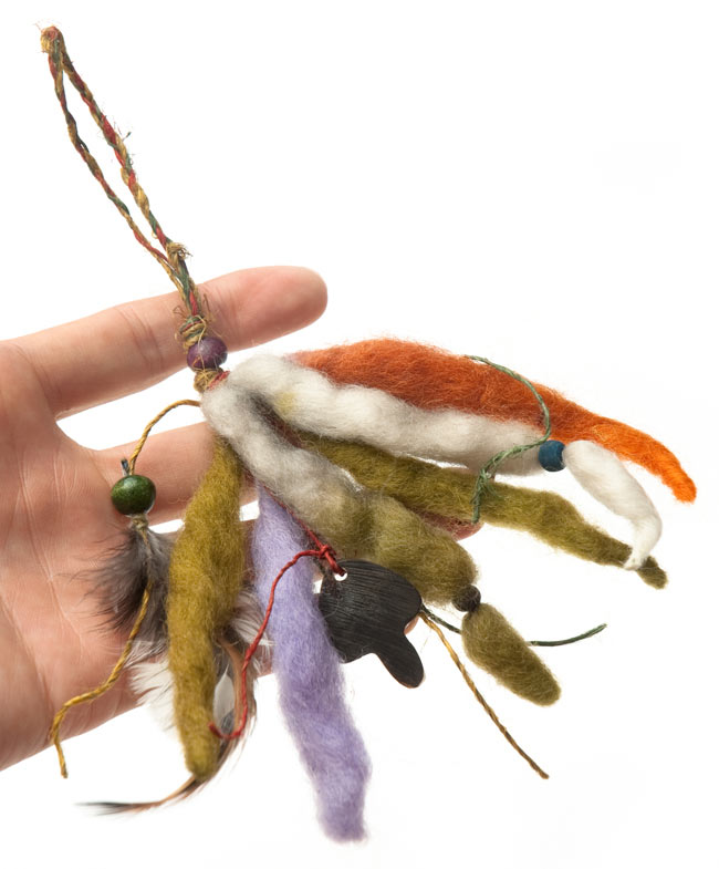 ネパール独特のかわいいデザインのストラップ。バッグへ付けたり携帯にデジカメに、あなたの小物を素敵に彩ります。このストラップはカラフルなフェルトがふんだんに使われて注目度満点です。存在感抜群なので、無くしやすい物に付けておくのにもお勧めです。
