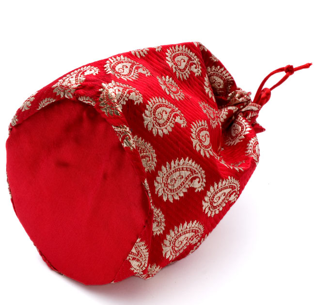 | 留意事項 | 口を締めるための紐がついておりますが、閉じてもすぐに開いてしまうものもございます。また、インドの方が手作りしている品ですので、それぞれ形や模様等の配置やホツレなど、個体差がございます。予めご了承くださいませ。 |