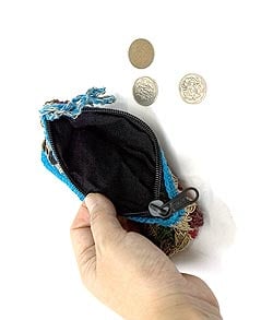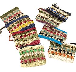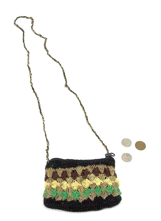 ヘンプとコットンで丁寧に編み込まれた小物入れ。エスニックな色使いと質感が味わい深い一品です。ジッパーがついているので、安心してお使いいただけます。小銭やタバコ入れ、携帯を入れてと、ちょっとした小物をいれておくのに便利な大きさです。