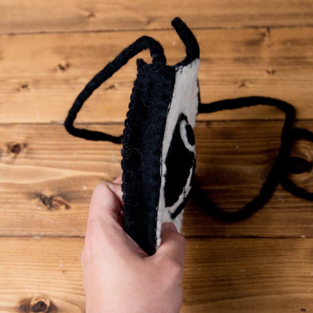 ゆるくてかわいいフェルトで作られた動物たちのポシェットです。ウェットフェルト製法という特殊な方法で手作りされており、羊毛を丁寧に刈り取ったあと、石鹸と水を使って根気よくより合わすことで作られるネパールのフェルト製品。動物たちの表情がなんとも愛らしく、手作りのぬくもりを感じます。まさにネパールのゆるキャラ文化を体現したようなデザイン。物によってペンギンのくちばしがお腹あたりに付いていたり、よく見ると色々つっこみどころのある所も。