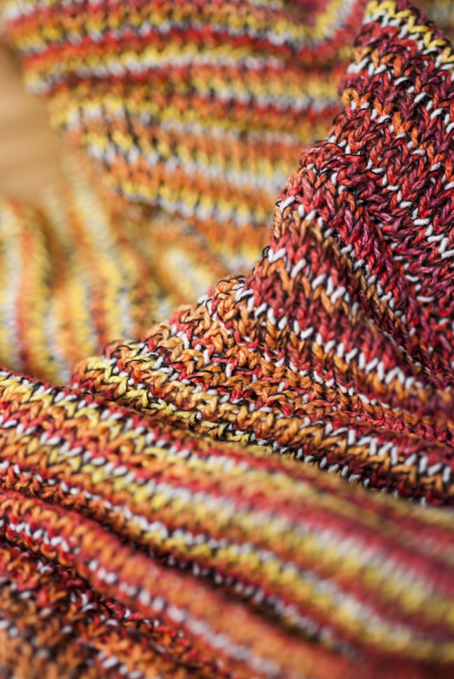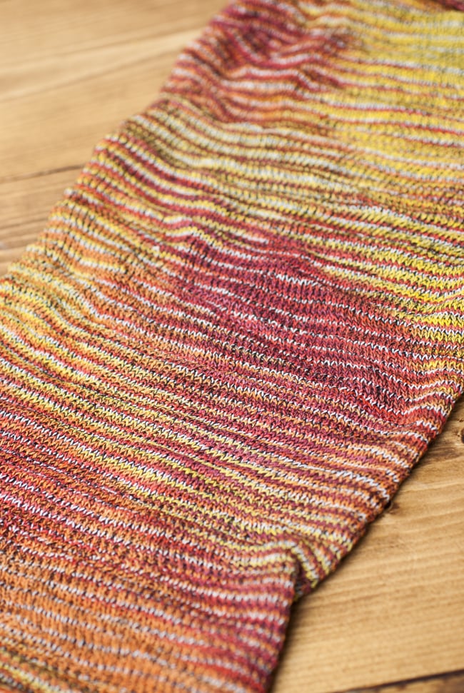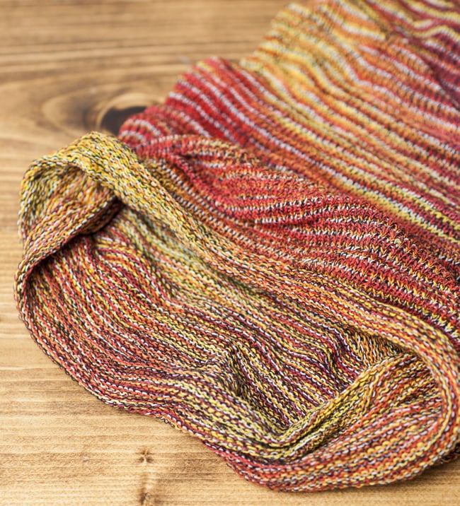 イエローとオレンジは、見るからに暖かそうな色合いだったので選びましたが、巻いてみると顔色にもなじみ、健康そうに見えるところも気に入っています。