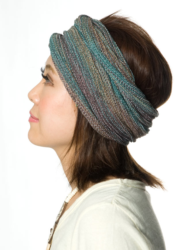 このターバンは何通りにも使える便利なターバンです。筒状になっていて幅がちょうどよく長さがあるので、くしゅくしゅにして使うととってもお洒落です。