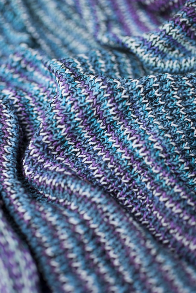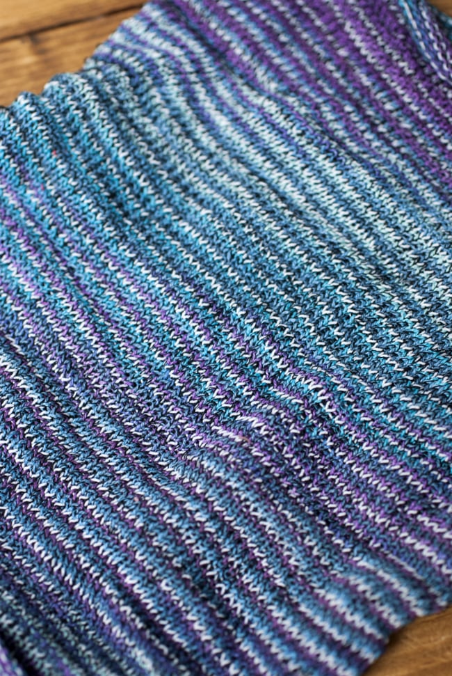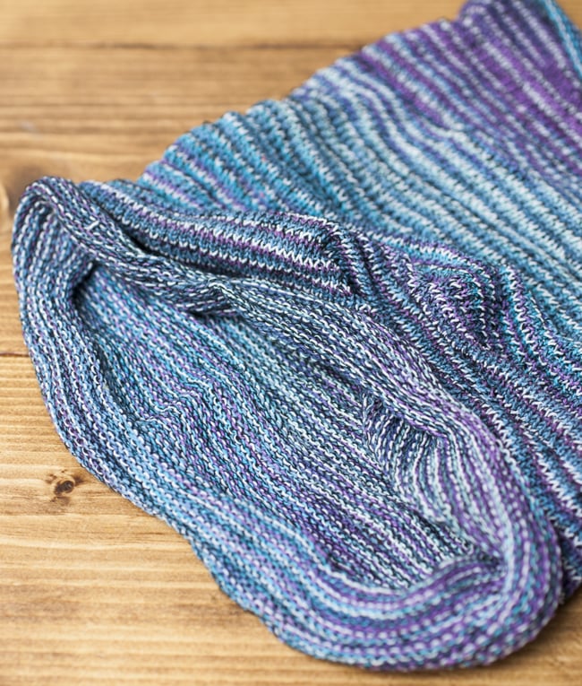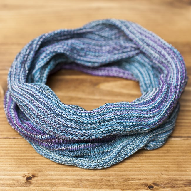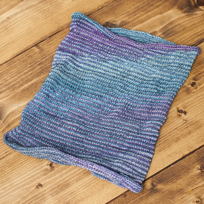 筒状の端は編みっぱなしで自然にくるくる丸まっているのですが編み糸の始末をしていないので、屑糸が暫くは服や髪につきます。