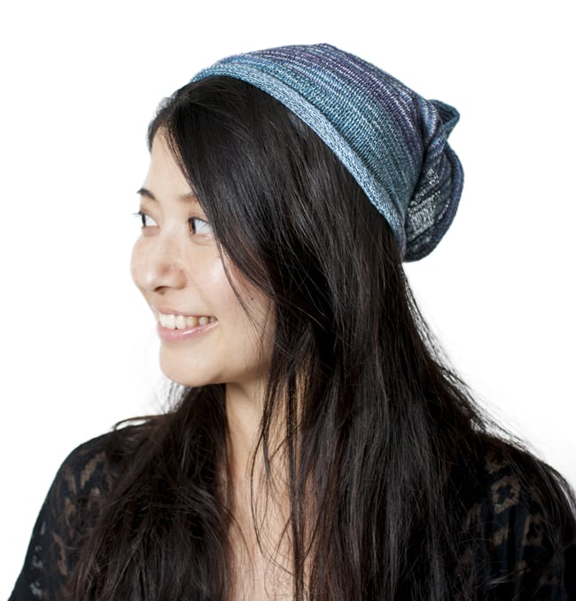 カラフルなので服の色を合わせやすいです。あまり伸びないので髪量の多い私の頭だと締め付けがキツくて長くかぶっていると頭痛がしました。かぶると頭ボサボサになりますので(笑)外出先でこまめに脱ぎたくなるキツさで出番がない状態です。もう少し頭まわりがゆるめのサイズでも裾を折り込めば固定されるんじゃないかと思うので、自分で伸ばせないかチャレンジしてみようと思います。頭サイズさえ合えばとってもいい商品だと思います。