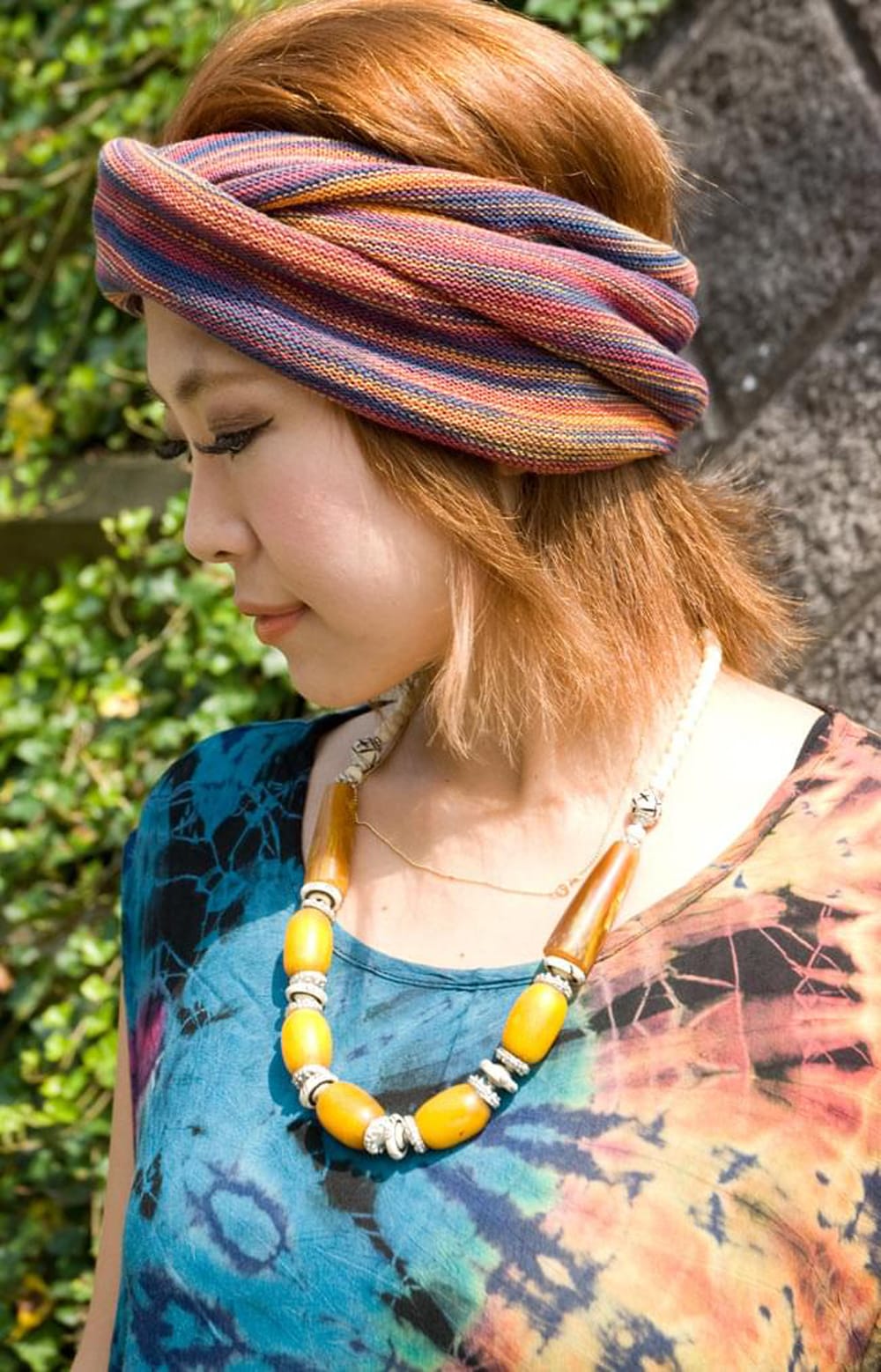 ヒマラヤの国、ネパールから届きました。コットンのターバンです。コットン素材の為、頭にフィットし被りやすいです。また、スヌードとして首に巻いてもOK!ですので、その日の気分でどちらでもお楽しみいただけますね!■気分に応じて使用方法は自由自在