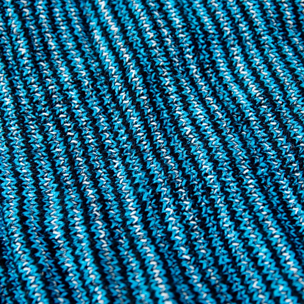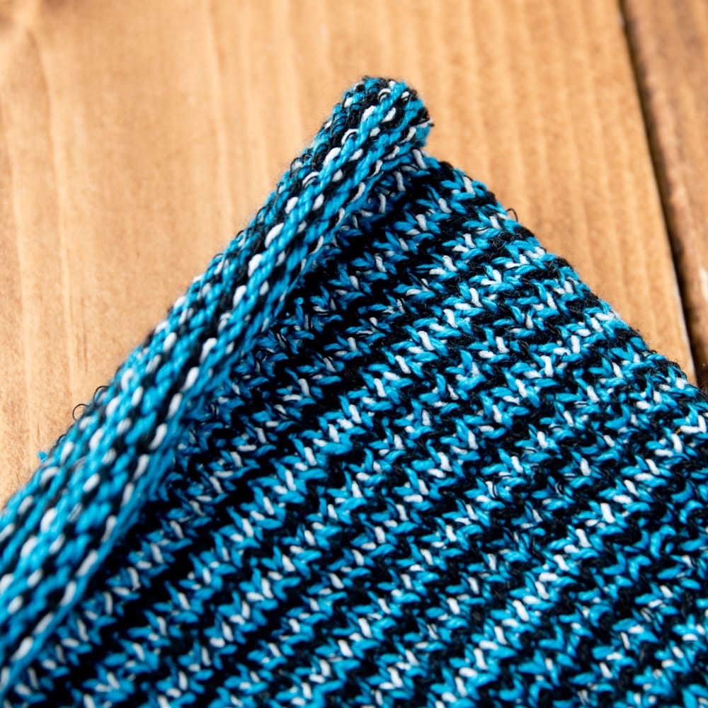 筒状の端は編みっぱなしで自然にくるくる丸まっているのですが編み糸の始末をしていないので、屑糸が暫くは服や髪につきます。