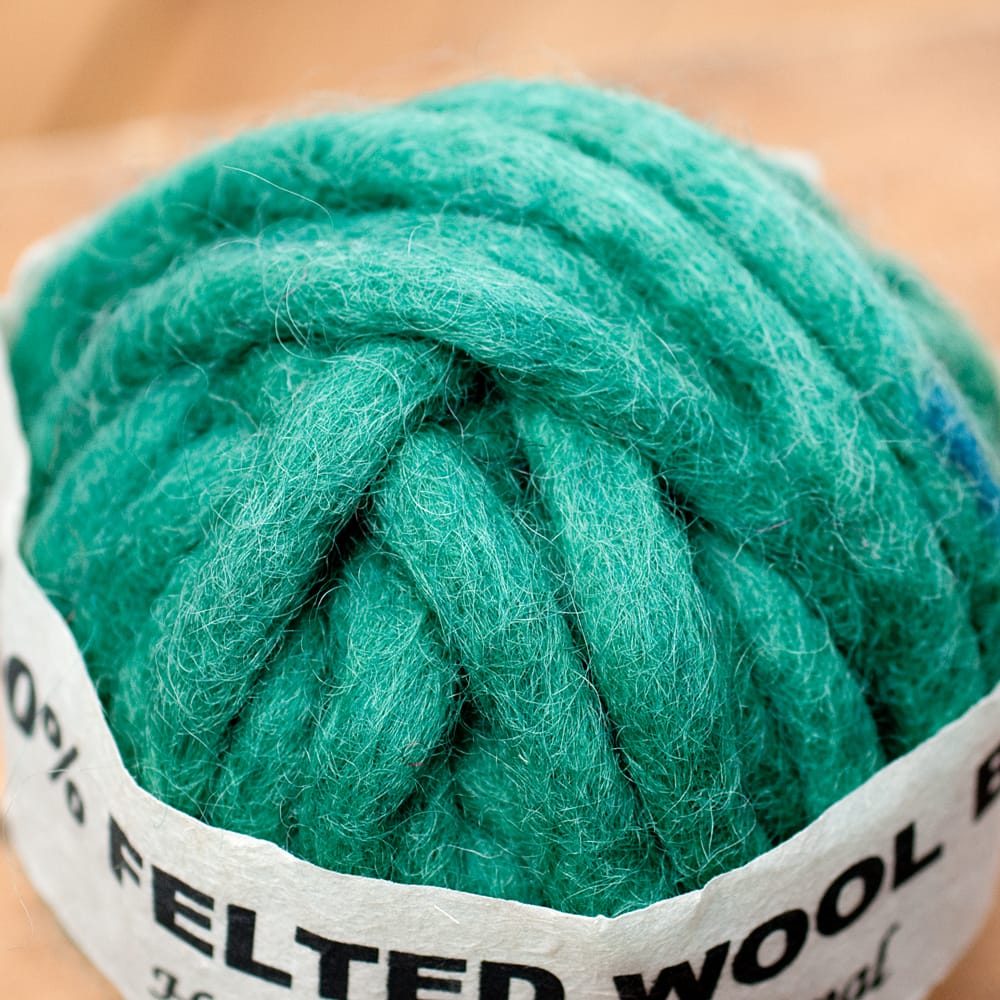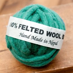 ネパール製フェルトウール糸です。この製品は、ネパール人の手で丁寧に縒り染色を施し、手間をかけてフェルトにしてあります。ぬるま湯と石鹸、そして手でコロコロと圧力を掛けると、羊毛が互いに絡みやすくなってきます。それを、時間を掛けながら一つの塊にしたのが、フェルト製品です。ネパールの農家のおばさんたちが、手間をかけながら日が暮れてから手でチクチクと作っています。■アクセ作り、手芸などへオススメ!