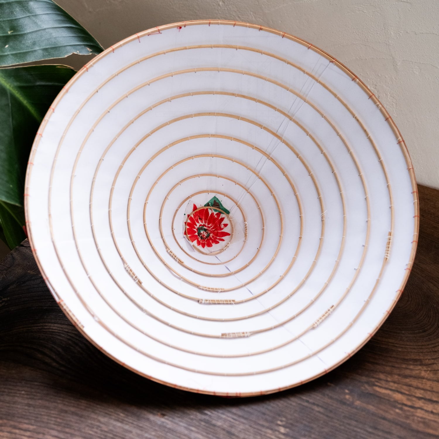 軽やかな自然素材と美しい円錐形はインテリアとしても楽しめます。白壁・木壁・土壁と相性が良く、サッとかけるだけで壁飾りになります。 また、ペンダントライトのシェード代わりに使用すれば、葉を透過したやわらかな光が出る温かみのある照明になります。