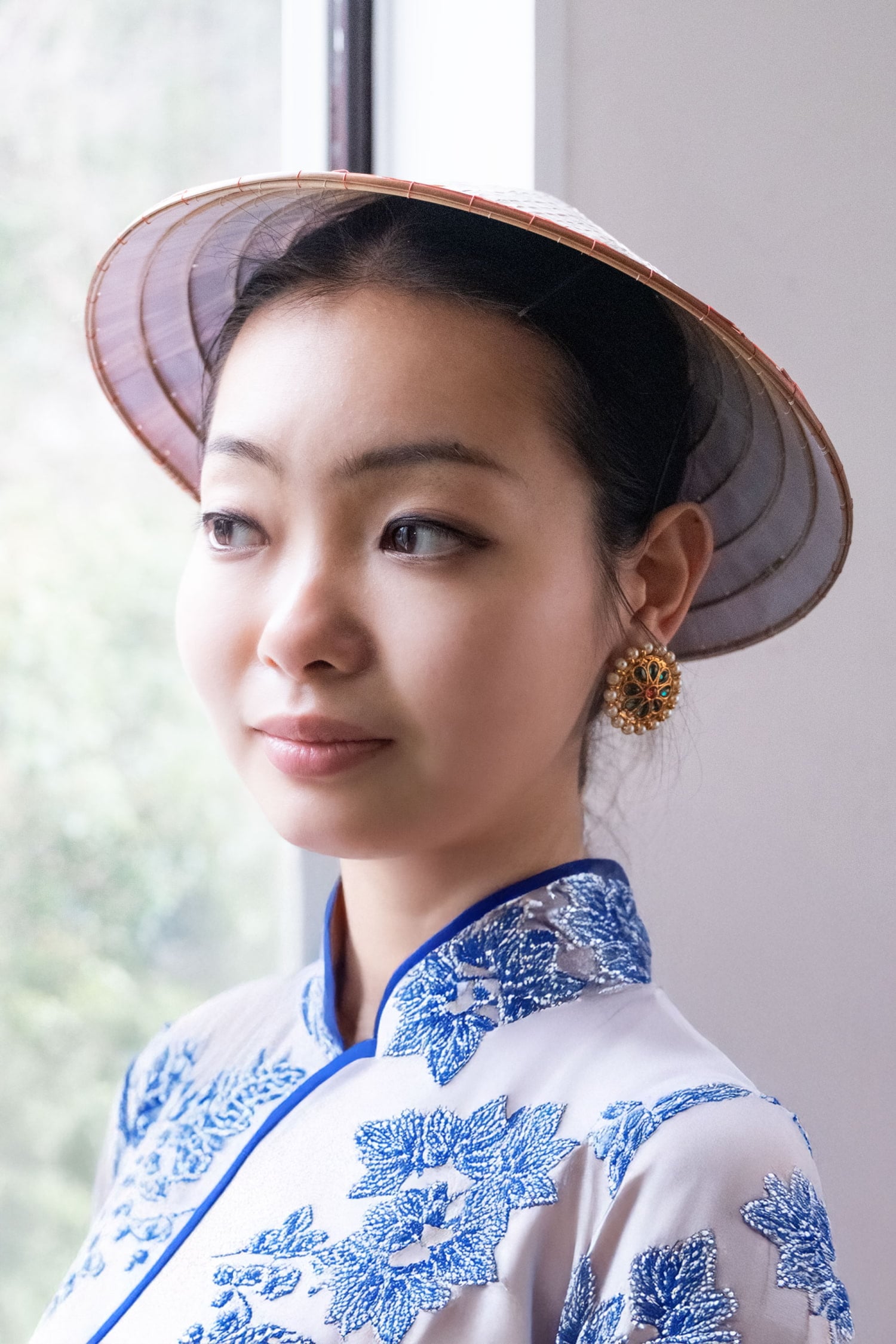 アオザイ(民族衣装)+ノンラーは、ベトナム女性の美しさを表す定番の組み合わせと言われており