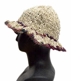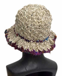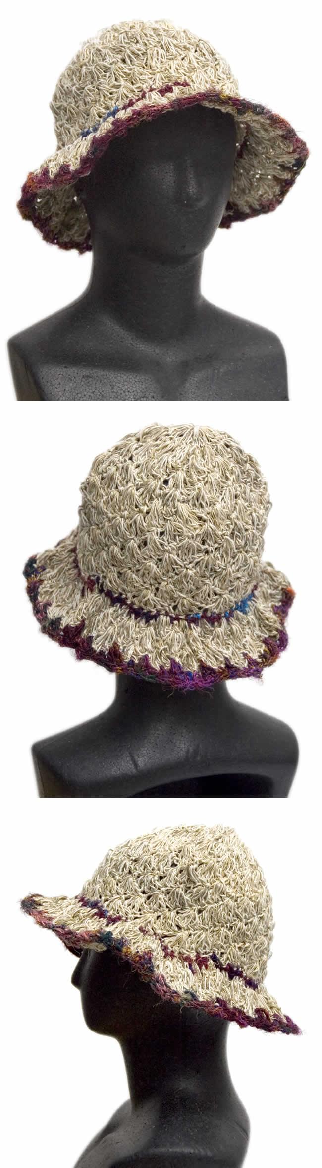 この帽子は、ネパールの人たちがそのヘンプの糸を使って一つ一つ、手で作っていきました。自然素材ならではの色合いと、やさしい風合いが魅力的ですね。