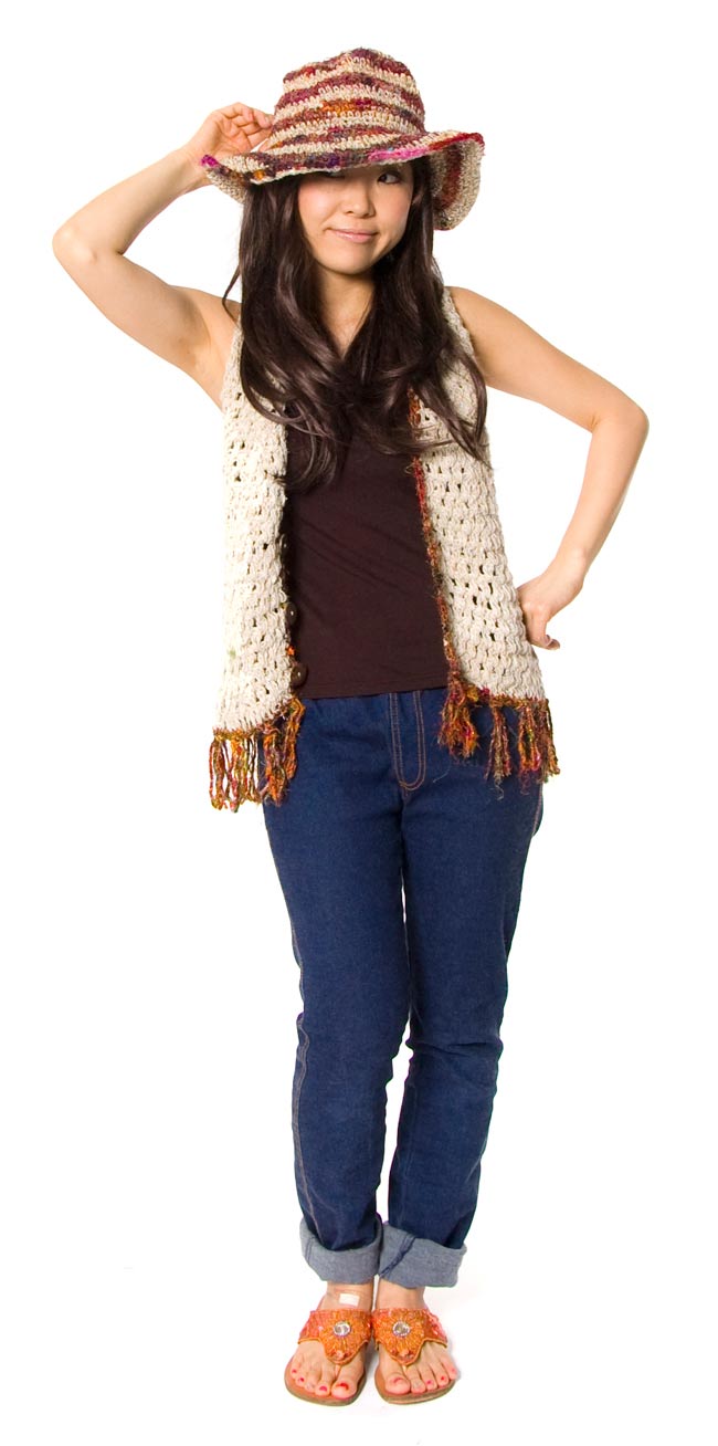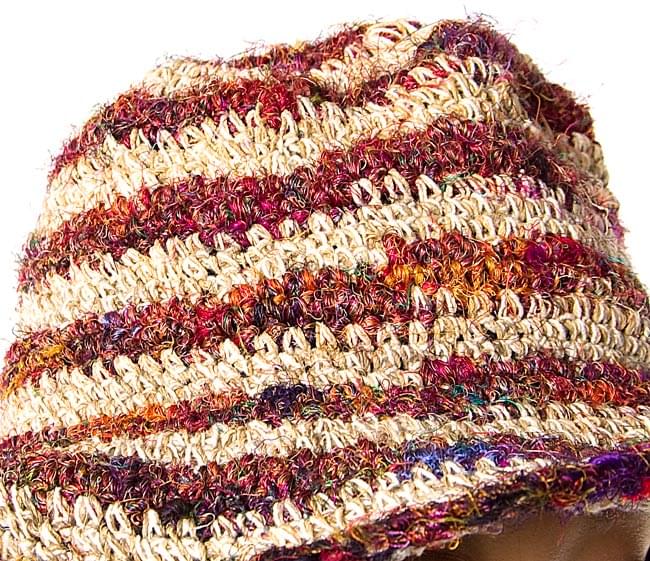 この帽子は、ネパールの人たちがそのヘンプの糸を使って一つ一つ、手で作っていきました。自然素材ならではの色合いと、やさしい風合いが魅力的ですね。