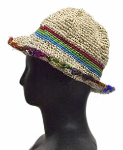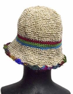 この帽子は、ネパールの人たちがそのヘンプの糸を使って一つ一つ、手で作っていきました。自然素材ならではの色合いと、やさしい風合いが魅力的ですね。