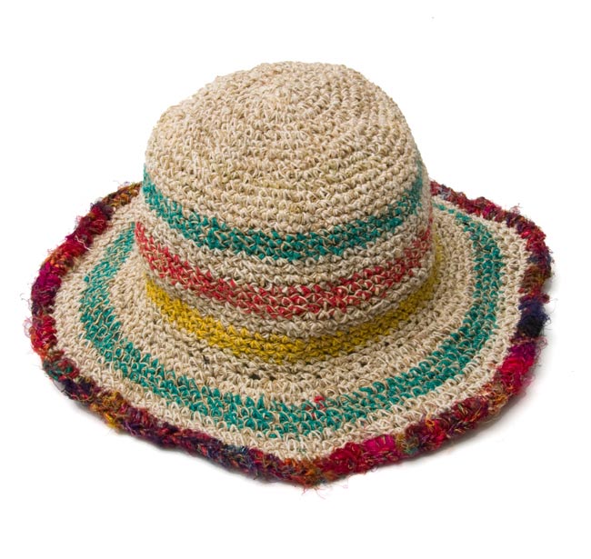 この帽子は、ネパールの人たちがそのヘンプの糸を使って一つ一つ、手で作っていきました。自然素材ならではの色合いと、やさしい風合いが魅力的ですね。