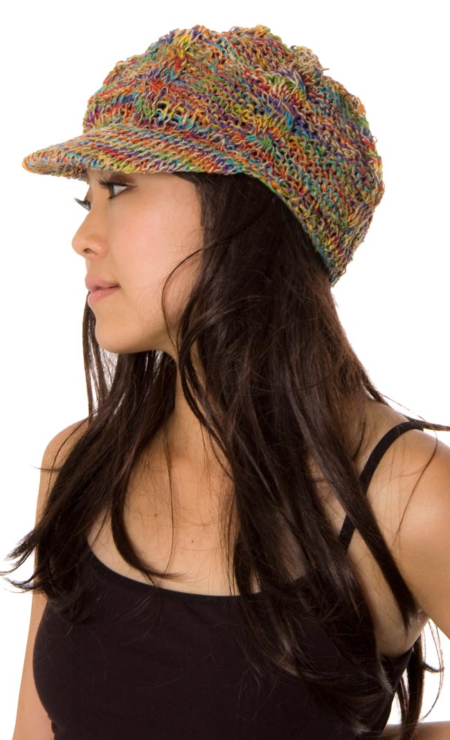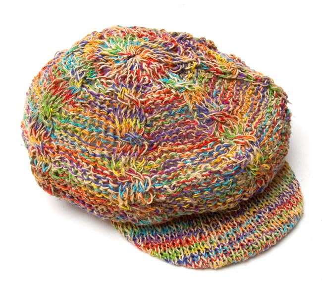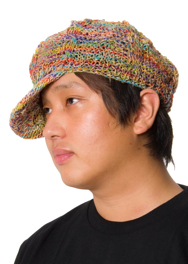 この帽子は、ネパールの人たちがそのヘンプの糸を使って一つ一つ、手で作っていきました。自然素材ならではの色合いと、やさしい風合いが魅力的ですね。