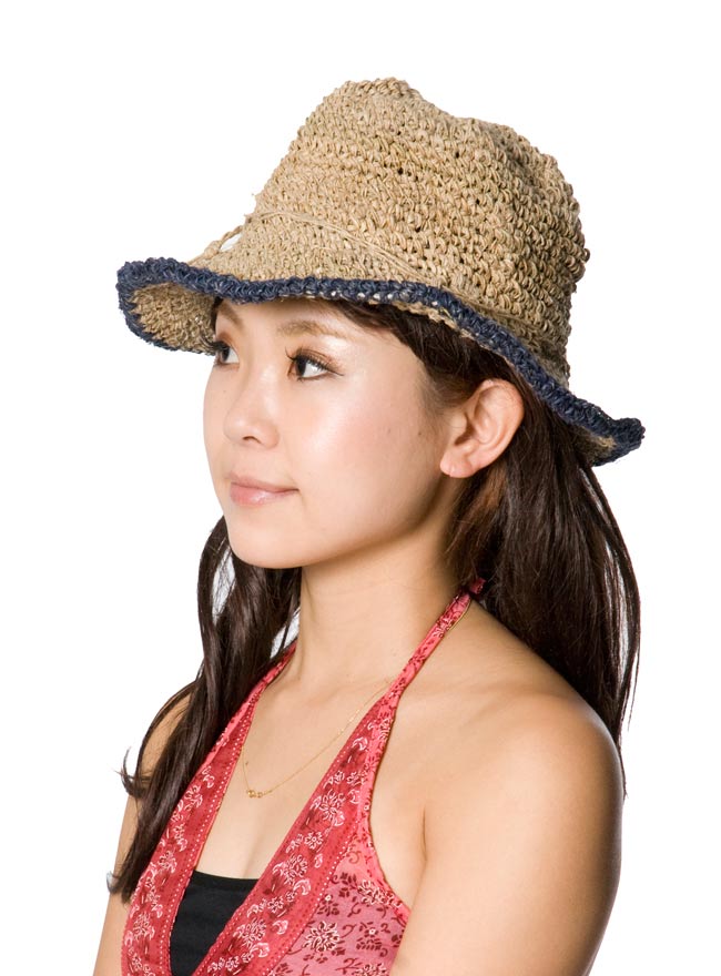 この帽子は、ネパールの人たちがそのヘンプの糸を使って一つ一つ、手で作っていきました。自然素材ならではの色合いと、やさしい風合いが魅力的ですね。