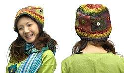 この帽子は、ネパールの人たちがそのヘンプの糸を使って一つ一つ、手で作っていきました。自然素材ならではの色合いと、やさしい風合いが魅力的ですね。