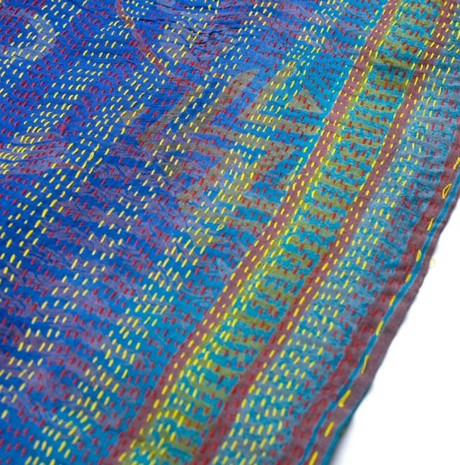 布の端から端までランニングステッチ(刺し子)が施されたカンタ刺繍のストールです。刺繍そのものは単純な刺し子ですが、その刺し子が布地の上を縦横無尽に駆け巡り、日本の刺し子とはまた異なる世界を作り出しています。布地に一針、一針、気が遠くなるような作業ですが、その生地と糸の色の交じり合った世界はとても美しく、思わずうっとり見入ってしまいます。■だからお買い得です。