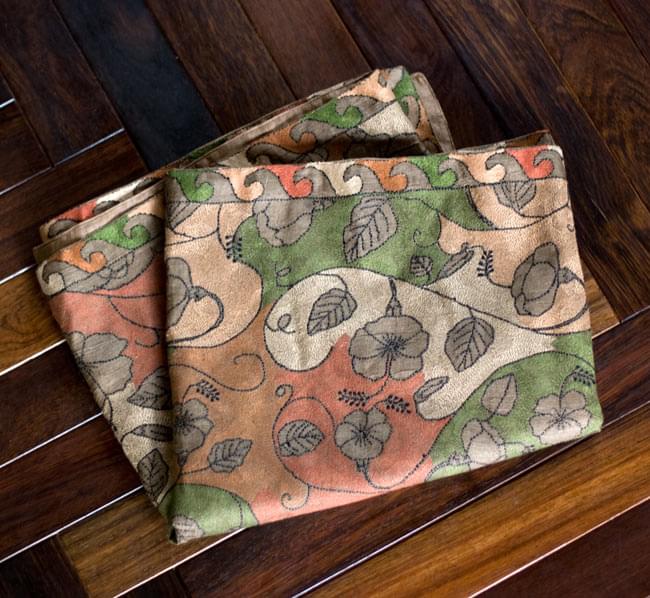 糸の色や布地の柄、その組み合わせが絶妙なショールは、シルクで出来ているため、軽くてしっとり肌触りもしなやかです。肩にかけたり、首に巻いたり、ひざ掛けにしたり。ちょっと使用するだけでも、その絶妙な色のバランスと質感が不思議な存在感を出してくれます。シンプルなコーディネートが一気に華やかになり、上品なエスニックな雰囲気をお楽しみ頂けると思います。