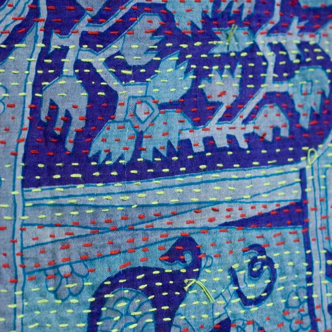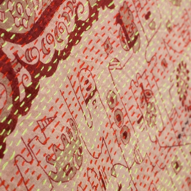 布の端から端までランニングステッチ(刺し子)が施されたカンタ刺繍のストールです。刺繍そのものは単純な刺し子ですが、その刺し子が布地の上を縦横無尽に駆け巡り、日本の刺し子とはまた異なる世界を作り出しています。布地に一針、一針、気が遠くなるような作業ですが、その生地と糸の色の交じり合った世界はとても美しく、思わずうっとり見入ってしまいます。■だからお買い得です。