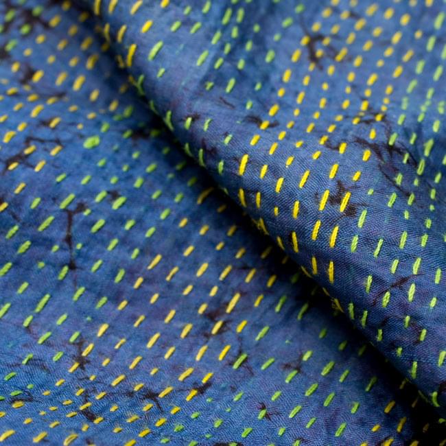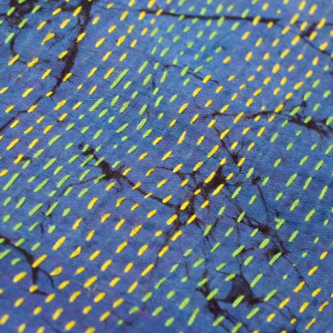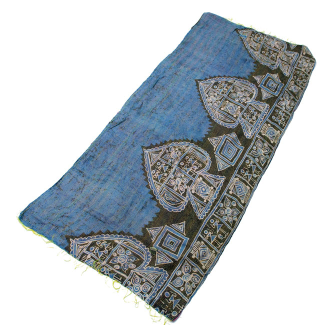 布の端から端までランニングステッチ(刺し子)が施されたカンタ刺繍のストールです。刺繍そのものは単純な刺し子ですが、その刺し子が布地の上を縦横無尽に駆け巡り、日本の刺し子とはまた異なる世界を作り出しています。布地に一針、一針、気が遠くなるような作業ですが、その生地と糸の色の交じり合った世界はとても美しく、思わずうっとり見入ってしまいます。■だからお買い得です。