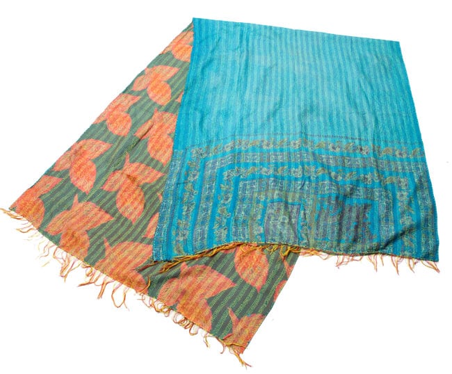 インドらしい様々な色柄のサリー生地、ぬくもりを感じる手縫い跡…。ひとつひとつ見ていても飽きません。充分な大きさがあるので、寒い季節にはストールや膝掛けに、暖かい季節にはマルチカバーやタペストリーにと大活躍です。お部屋に広げてあると気分も明るくなります。