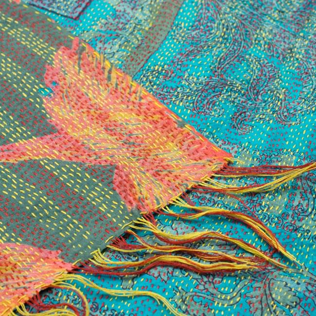 【アソート】パッチワークのカンタ刺繍ショール (約95cm×約190cm)
