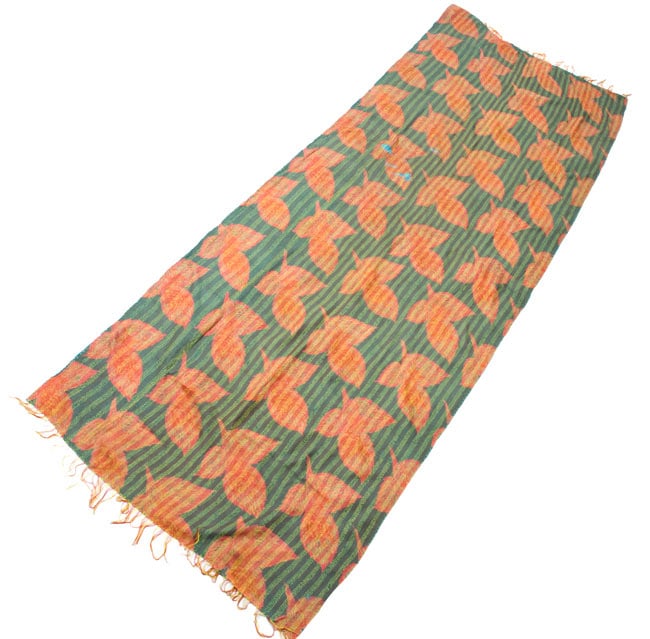 布の端から端までランニングステッチ(刺し子)が施されたカンタ刺繍のストールです。刺繍そのものは単純な刺し子ですが、その刺し子が布地の上を縦横無尽に駆け巡り、日本の刺し子とはまた異なる世界を作り出しています。布地に一針、一針、気が遠くなるような作業ですが、その生地と糸の色の交じり合った世界はとても美しく、思わずうっとり見入ってしまいます。■だからお買い得です。