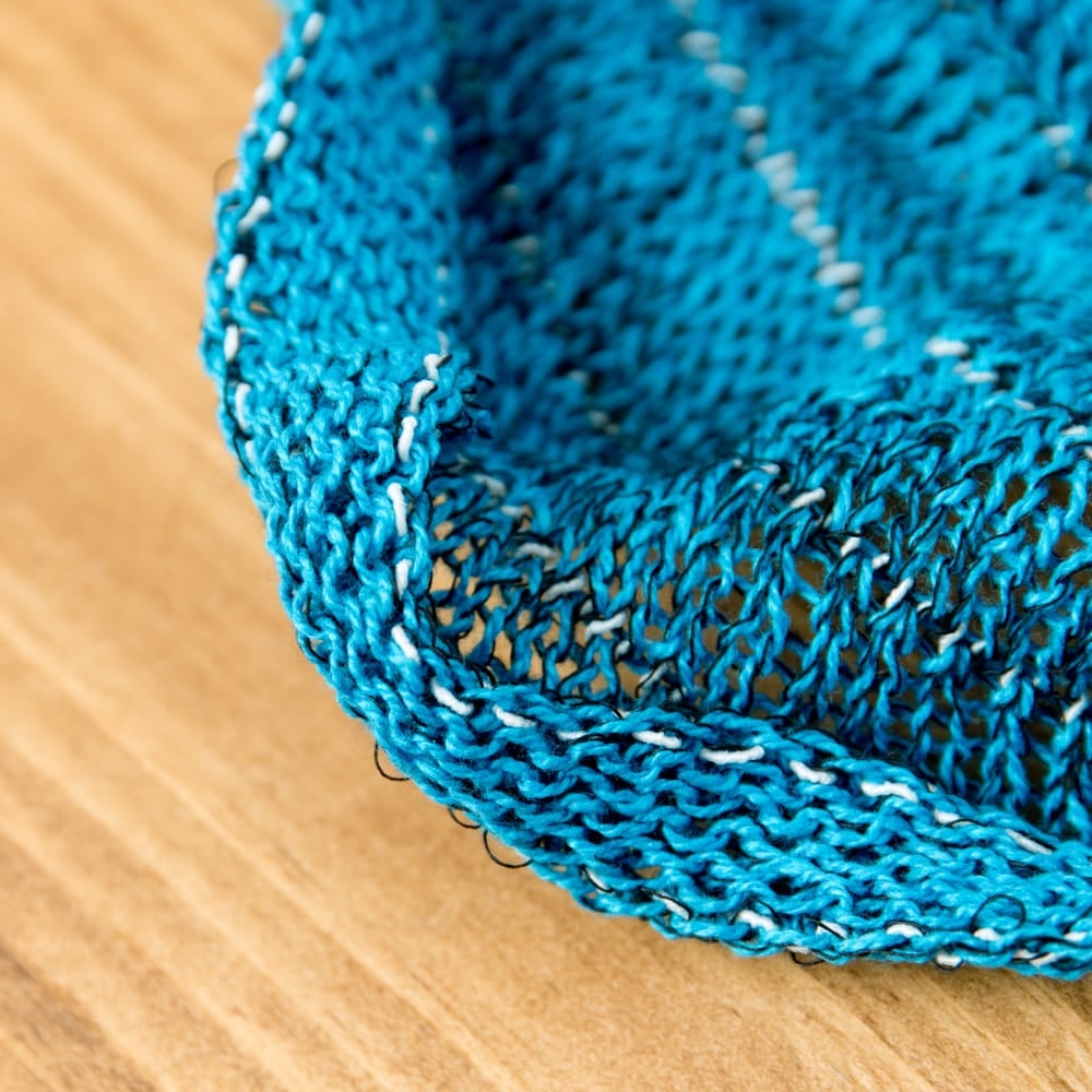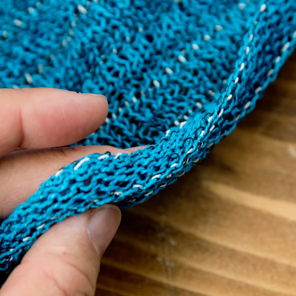 質感がわかるように撮ってみました。裏表で編み目は異なりますがどちらでもお好みでお楽しみ頂けます。