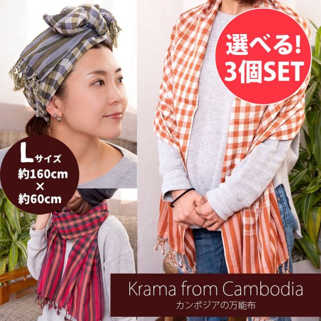 【自由に選べる3個セット】カンボジアからやってきた万能布 クロマーLサイズ【約60cm×160cm】 通販店