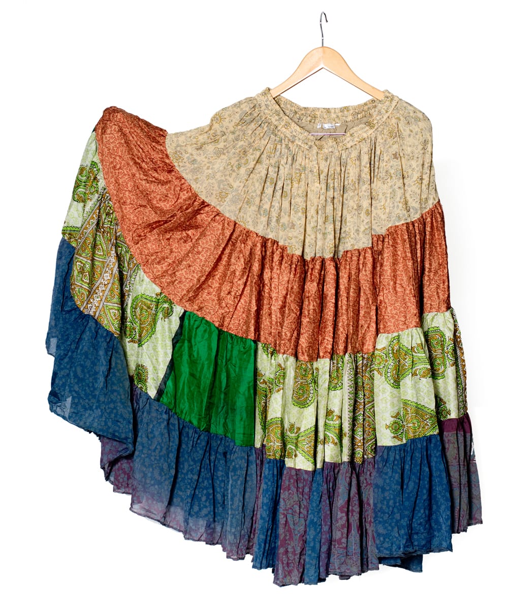 25ヤード アンティークサリーのジプシーパッチワークスカート4段【90cm】 通販店