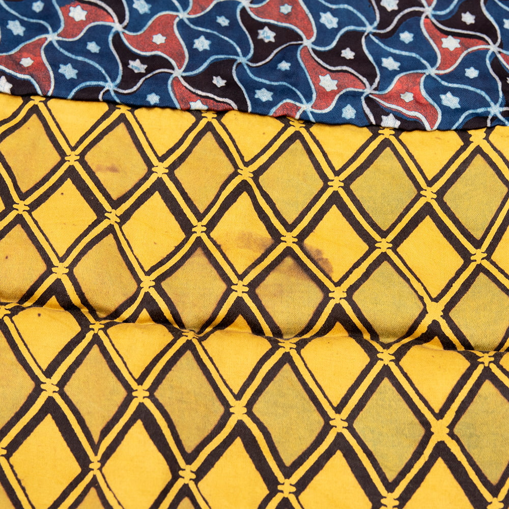 パキスタン・シンドからインドグジャラートにかけて発達したアジュラック布。その歴史は4000年以上とも言われています。インダス文明最大級の都市遺跡モヘンジョダロ(パキスタン)からは、ジュラックに関する遺物が発見されており、歴史の深さが伺えます。イスラム文化の影響を受けた柄は、幾何学的な模様が繰り返されとても神秘的です。