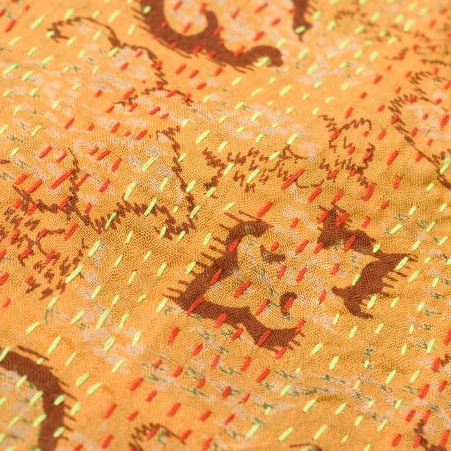 ため息が出るほどに細かい作業のランニングステッチですが、布地の切り方や糸の纏り具合はちょっといい加減な一面もあり。糸が攣れていたり、切り方が斜めだったりしますのでそのあたりはご愛嬌。ストールのように巻いてしまえば全く問題ありません。通常価格よりもかなりお安くご用意しておりますので、細かいことが気にならない方向けです。■使い方はあなた次第。