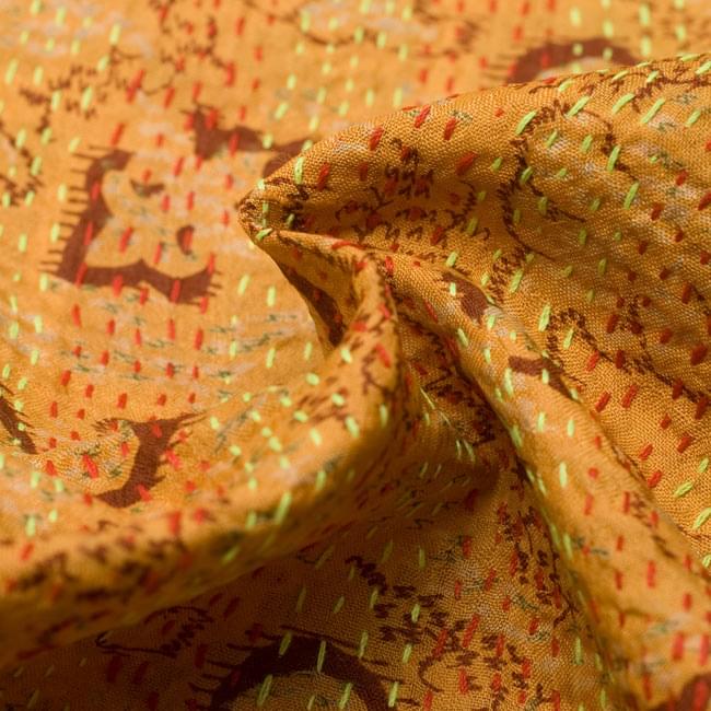 ストールとしてではなく、和室の間仕切りにカーテンっぽく使っています。お部屋が一気に明るくなり、とてもかわいいです。手縫いのステッチがまた味があります。