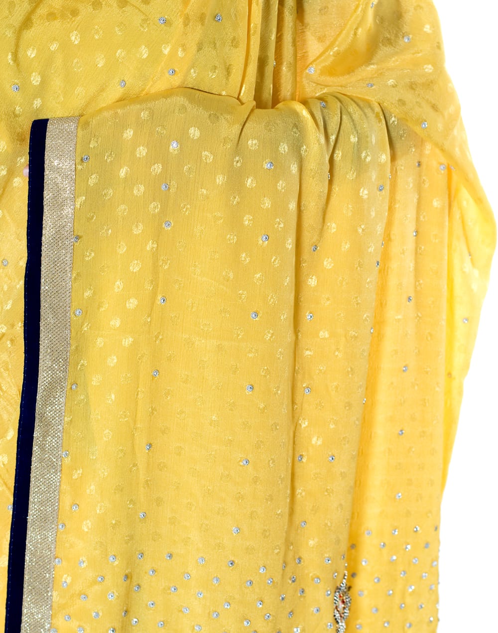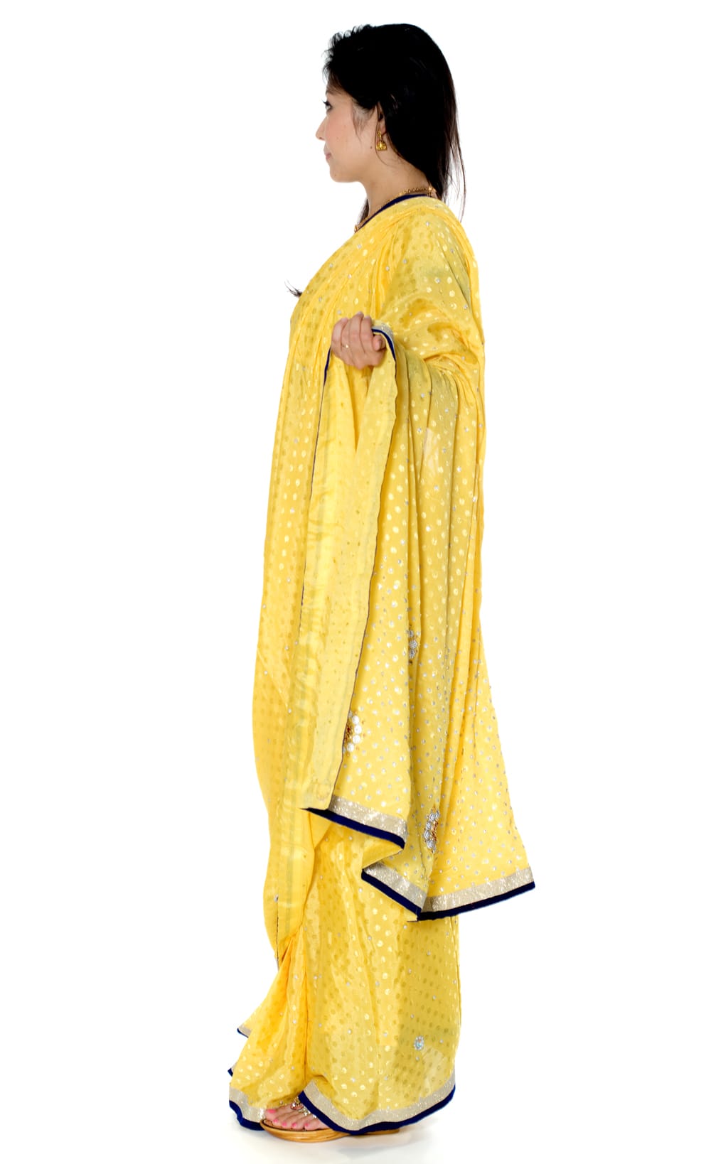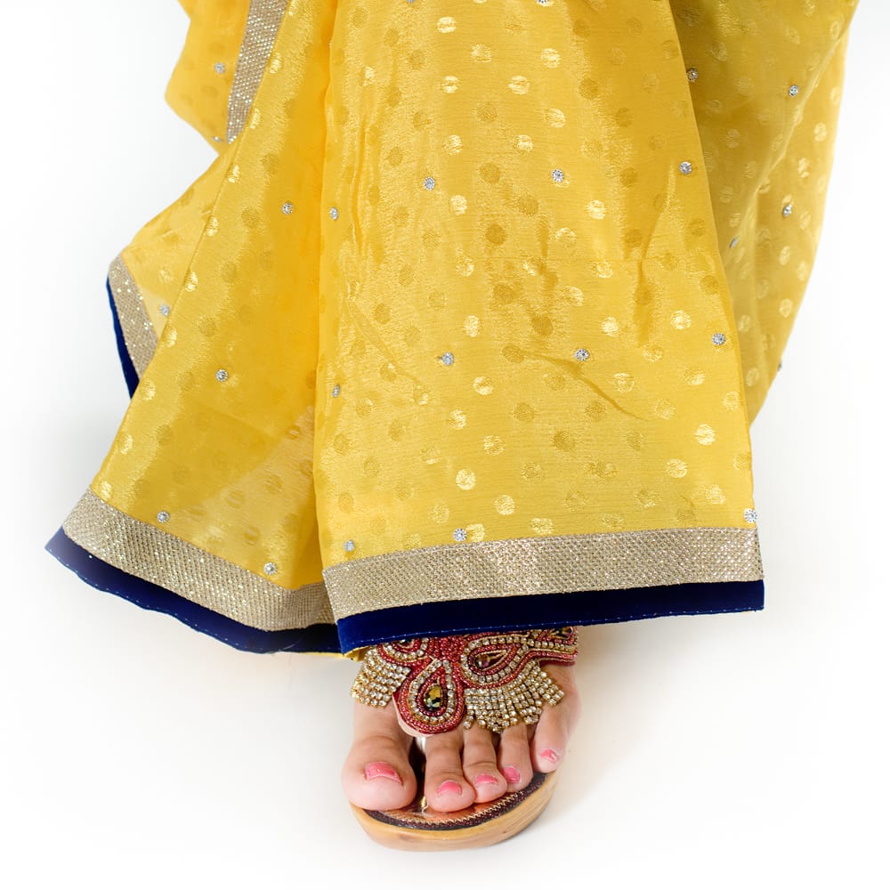 ビーズ刺繍のドット柄マハラニインドサリー【チョリ付き】 - 黄色