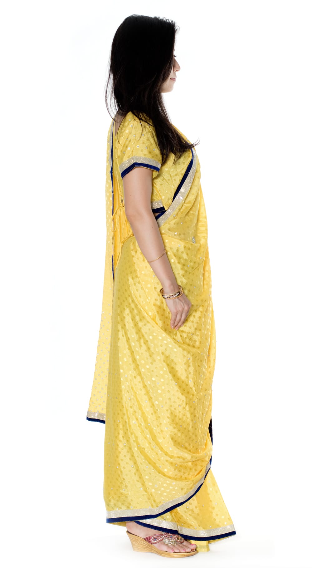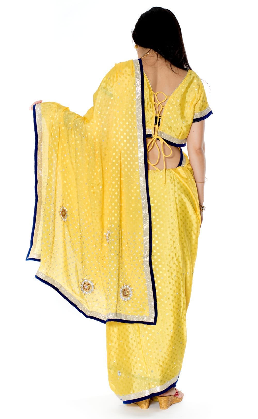 ビーズ刺繍のドット柄マハラニインドサリー【チョリ付き】 - 黄色の類似商品