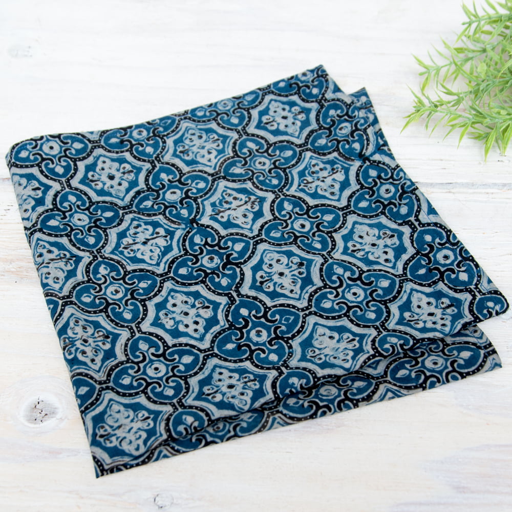 南インドの木版染めアジュラック布ハンカチ - ブルーの同一カテゴリ商品