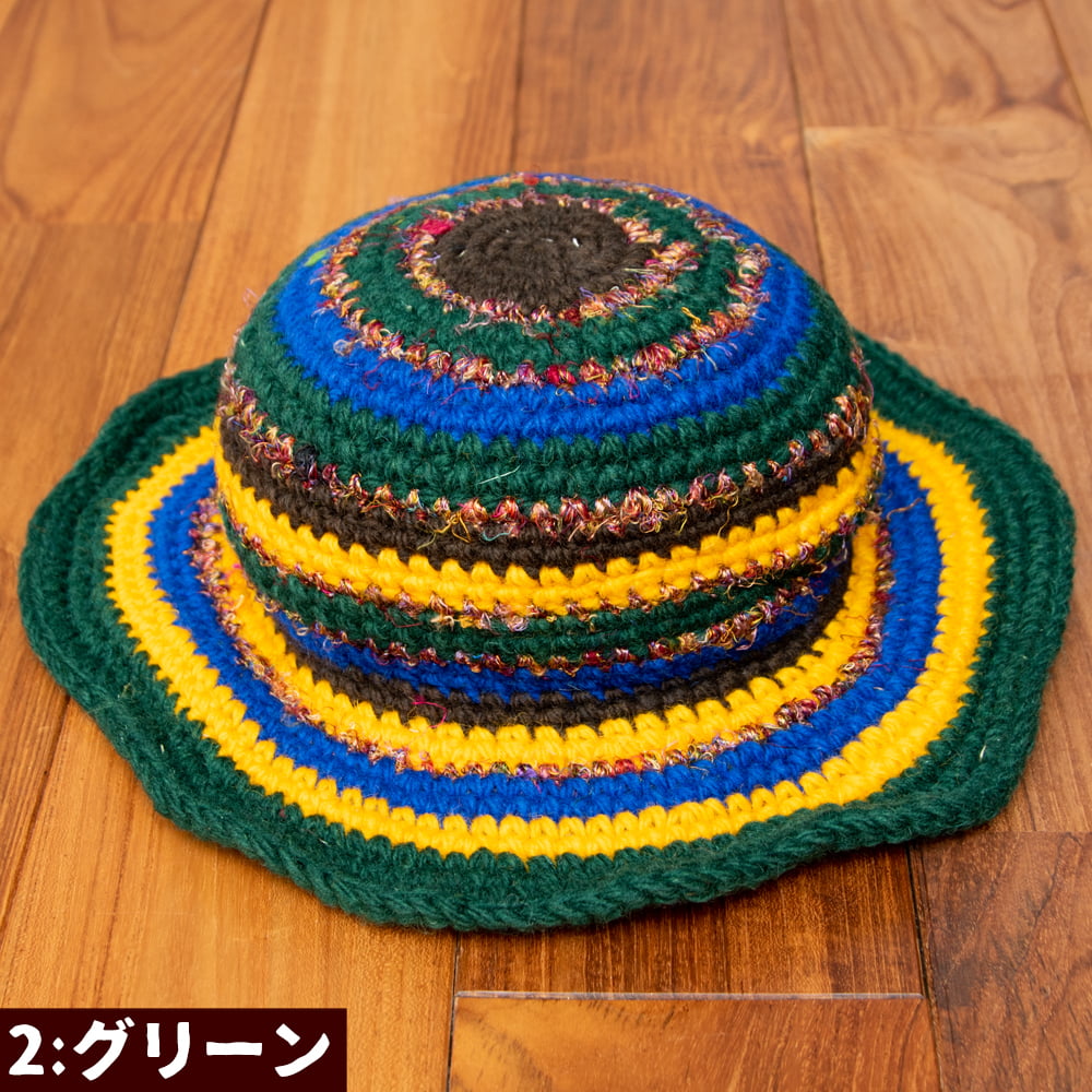ウールとシルクのカラフルハットの商品写真 10枚目 選択2:グリーン