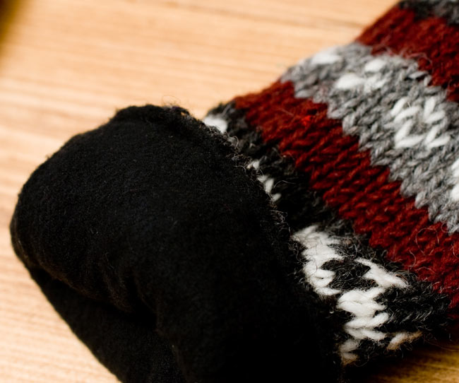 ボーダーのデザインが目をひく、ふわふわウール製のロンググローブ。ボーダーの中にある模様がエスニックな雰囲気になり魅力的な一品です。ポンポンも付いて手元がキュートに決まりますよ!■インナーフリースでポカポカ