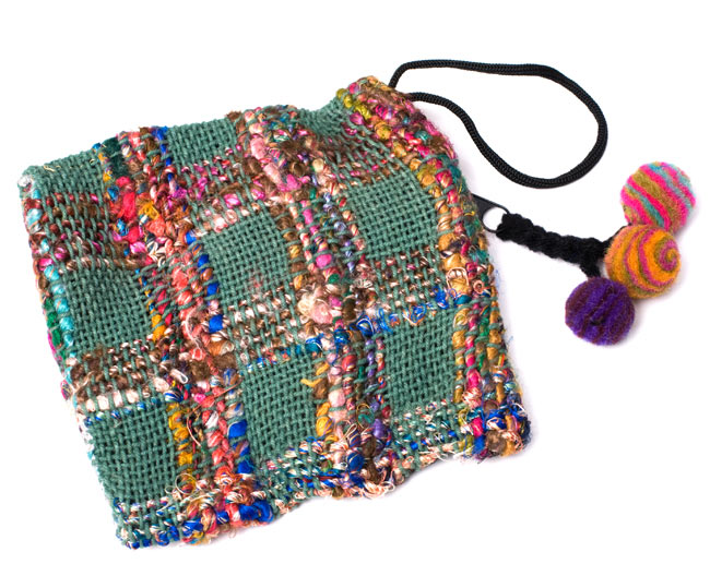 ネパールのシルクポーチ-ぽんぽん付き 【グリーン】の類似商品