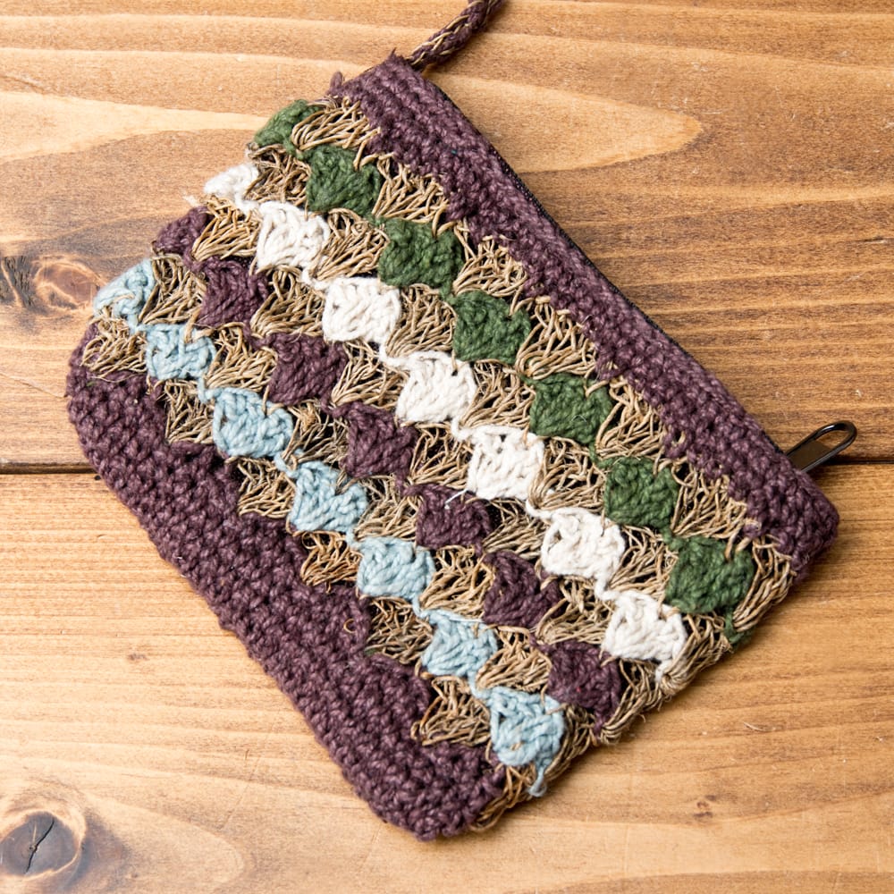 世界中で環境に優しいエコ素材として注目されているワイルドヘンプと、コットンで丁寧に編み込まれた小物&小銭入れです。