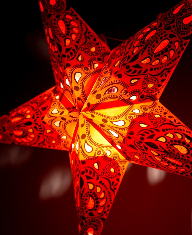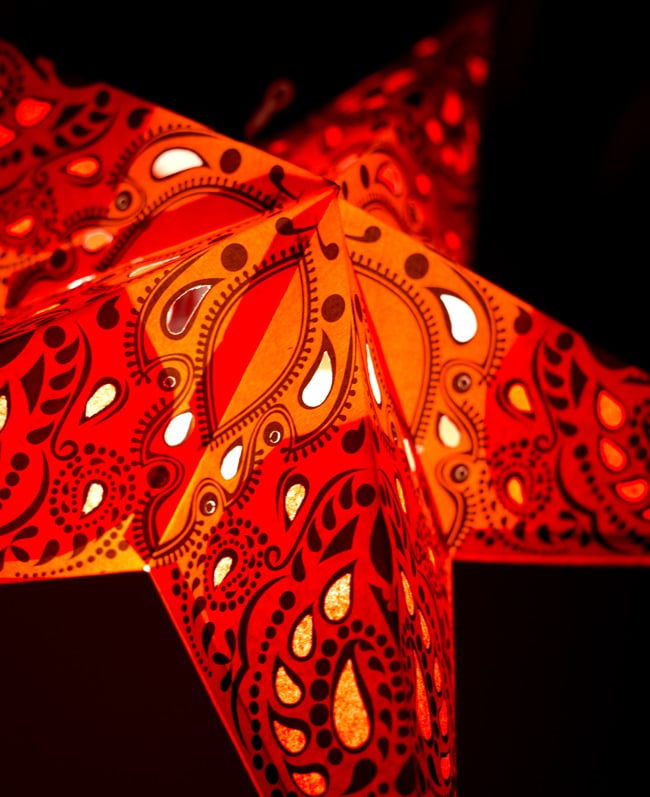 インドで最近流行中の星型ランプシェードです。裸電球にかぶせる吊り下げタイプの簡単なランプシェードですが、仕上がりは結構おしゃれ。一個あるだけで、お部屋がなかなかいい感じになってくれます。ヒッピーの聖地ゴアでは大流行しているらしく、旅行に行った友達が「みんなこのランプシェードを使っていたよ!」と言っていました。■パーティーなどの飾り付けに