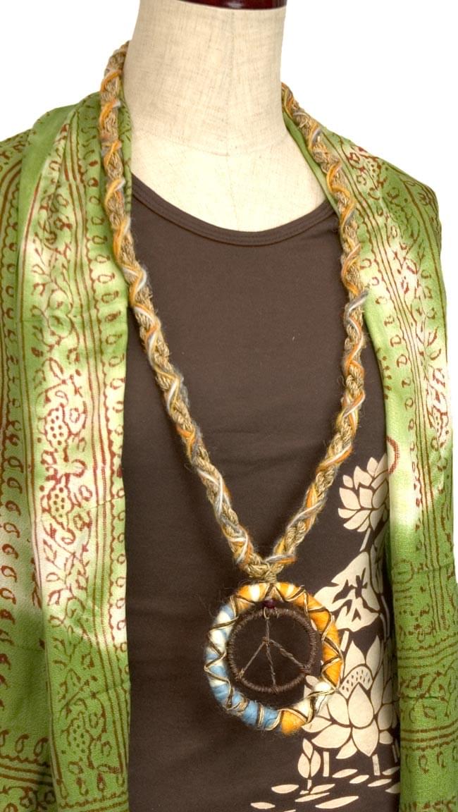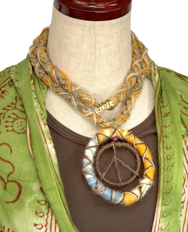 毛糸の柔らかな素材にヘンプのかっちりした素材が、絶妙にマッチ。独特の雰囲気を楽しめます。