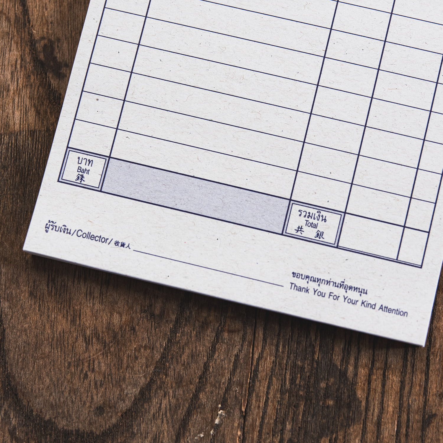 タイの雑貨屋さんで見つけてきた、飲食店で使われる注文伝票です。めくるとタイ語のコロコロした文字が見えてとってもかわいいです。ミシン目が入っているのでビリっと簡単に破ることができます。再生紙とつるつるした紙が交互に用いられているのもなんだか愛らしいですね。■メモ帳にも