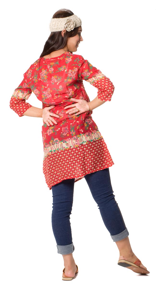ハーフスリーブ小花柄コットンチュニック 【赤×クリーム】の類似商品