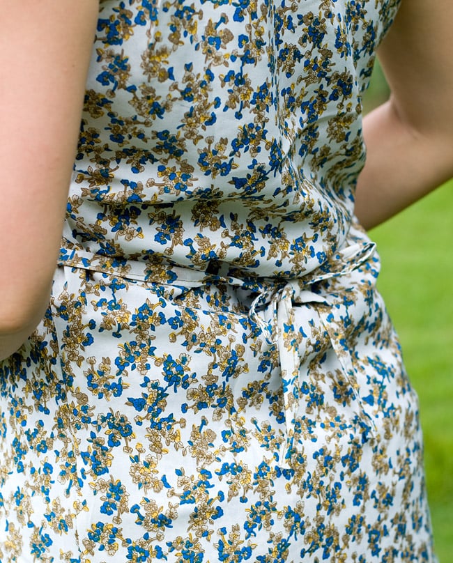 花柄やペイズリー柄のインドのオールドシルクサリーを使ったワンピースです。異なる生地で2枚仕立ての作りなので、その日の気分でどちらの面もお楽しみ頂けます。(襟元のタグは付いていますので、着用の際は切り離して下さい)ちょっと小さめの作りですが、上半身をコンパクトにすっきり見えるデザインです。■世界に1枚だけの組み合わせ