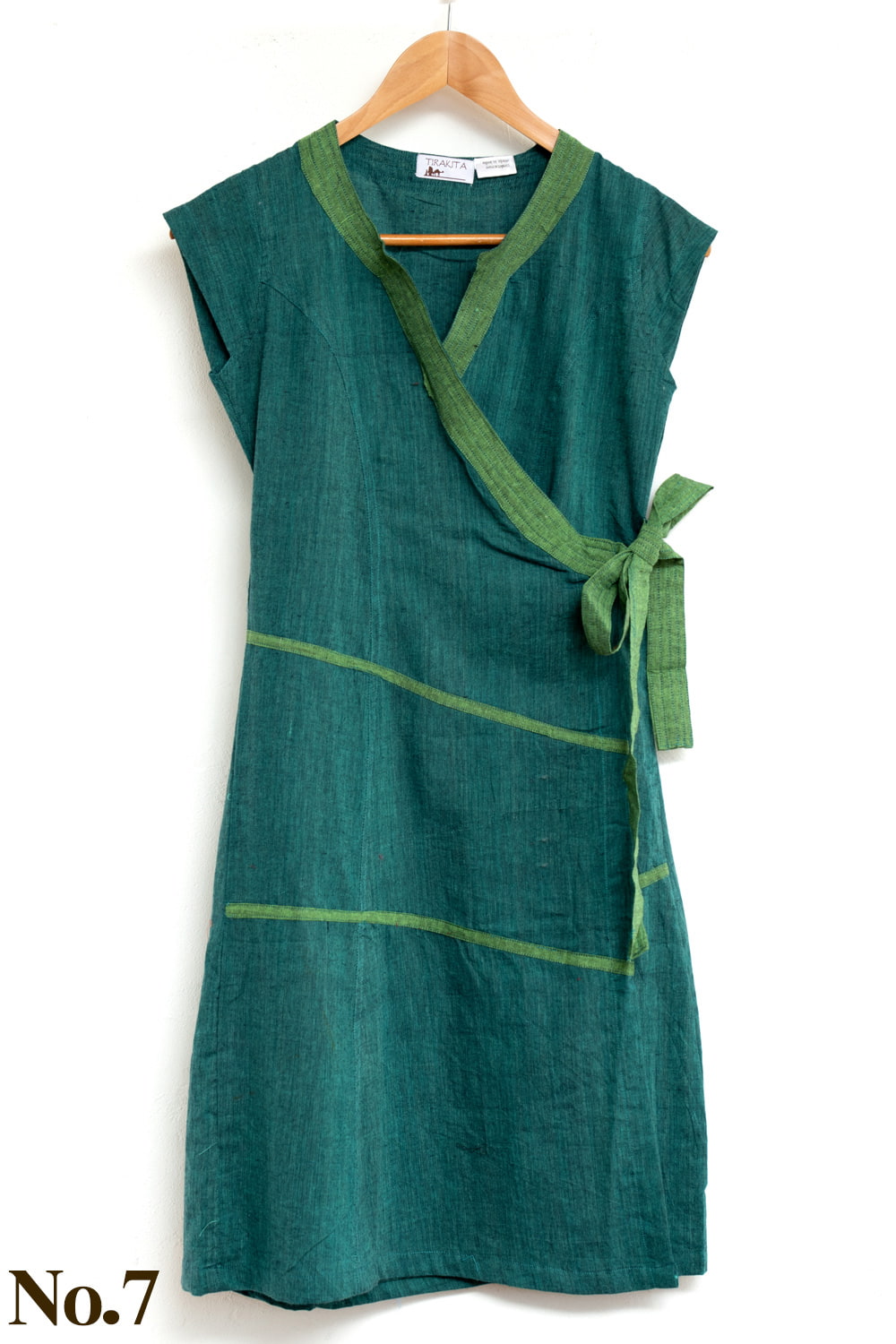 コットンなので肌触りも心地よく、着心地抜群です。暑い季節にぴったりの一品ですよ。胸元のVネックや斜めに入ったパイピング、サイドを紐で結ぶデザイン等、すっきり見える工夫がいっぱい。デニムやレギンスに合わせてアジアンなアクセサリーと合わせてお楽しみください。暑い夏は一枚で、春先や秋口には、薄手のインナーと重ね着してお楽しみ頂けます。