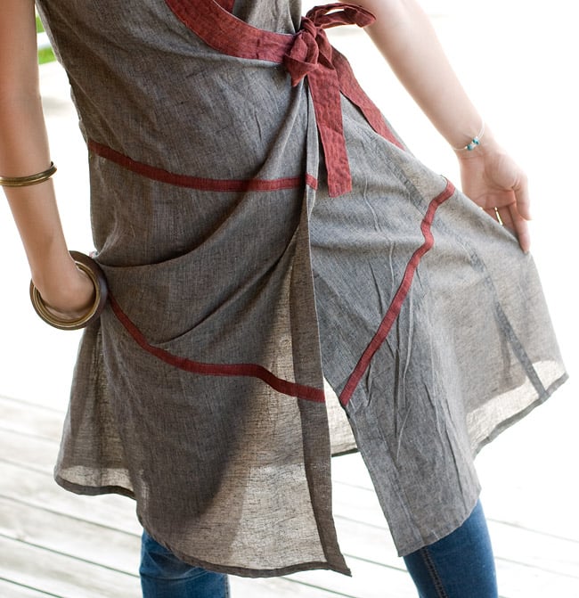 コットンなので肌触りも心地よく、着心地抜群です。暑い季節にぴったりの一品ですよ。胸元のVネックや斜めに入ったパイピング、サイドを紐で結ぶデザイン等、すっきり見える工夫がいっぱい。デニムやレギンスに合わせてアジアンなアクセサリーと合わせてお楽しみください。暑い夏は一枚で、春先や秋口には、薄手のインナーと重ね着してお楽しみ頂けます。